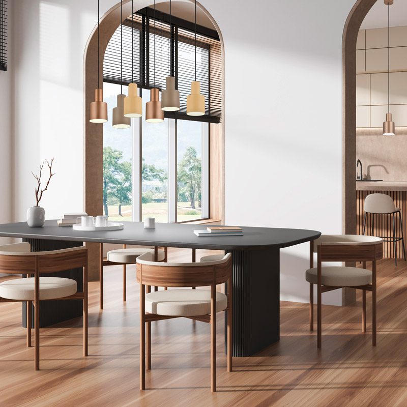 Erikorkuisten ja -sävyisten valonlähteiden yhdistely luo kotiin näyttävän, modernin ilmeen. Tämän yksiliekkisen riippuvalaisimen luonnollinen värimaailma ja selkeälinjainen muotoilu tuovat tilaan rauhallista ja minimalistista eleganssia. Agudo sopii täydellisesti ruokapöydän, keittiösaarekkeen tai työskentelytason yläpuolelle. Se luo pehmeän ja kutsuvan tunnelman yksinään tai useamman valaisimen ryhmänä.