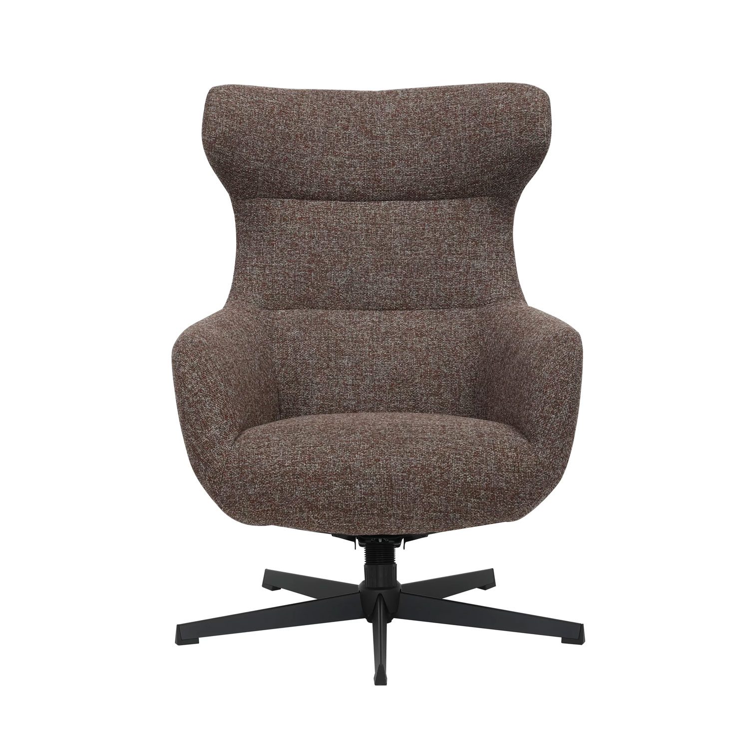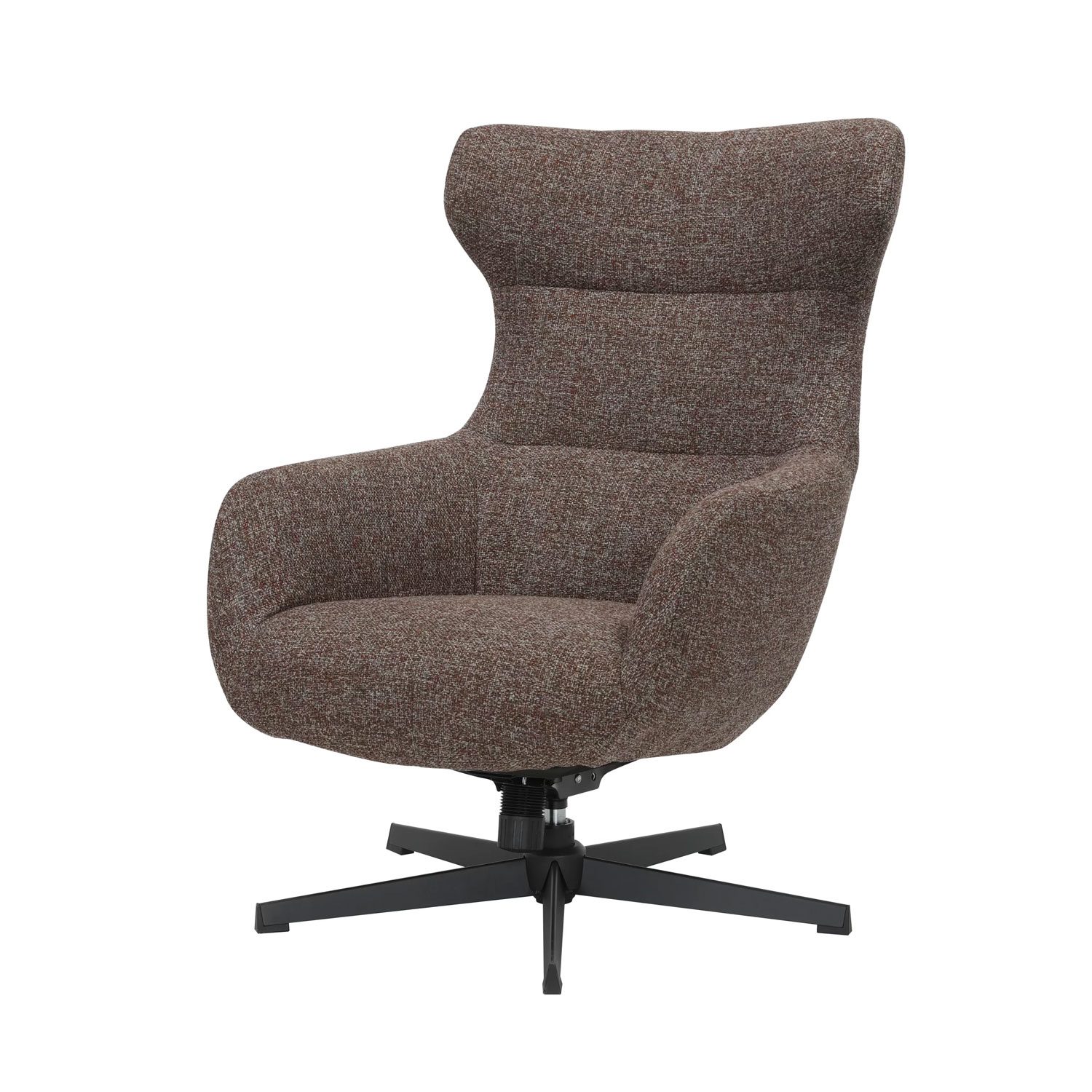 Tuoli on verhoiltu laadukkaalla ja kestävällä Fiber-huonekalukankaalla, joka tuntuu miellyttävän pehmeältä. Kauniisti muotoiltu korkea selkänoja tuo näyttävyyttä ja tarjoaa erinomaisen tuen erityisesti ristiselälle. Pehmustettu istuin lisää istuinmukavuutta ja keinumekanismi mahdollistaa eri istuinkulman. Tukeva musta metallijalusta viimeistelee tuolin modernin ilmeen ja varmistaa vakaan istumakokemuksen.