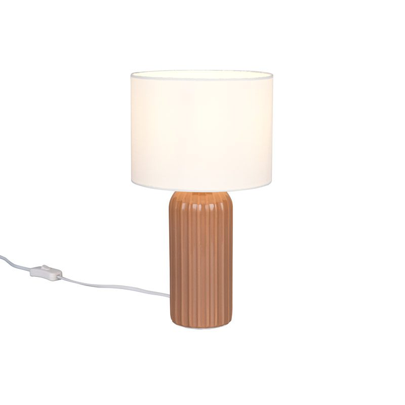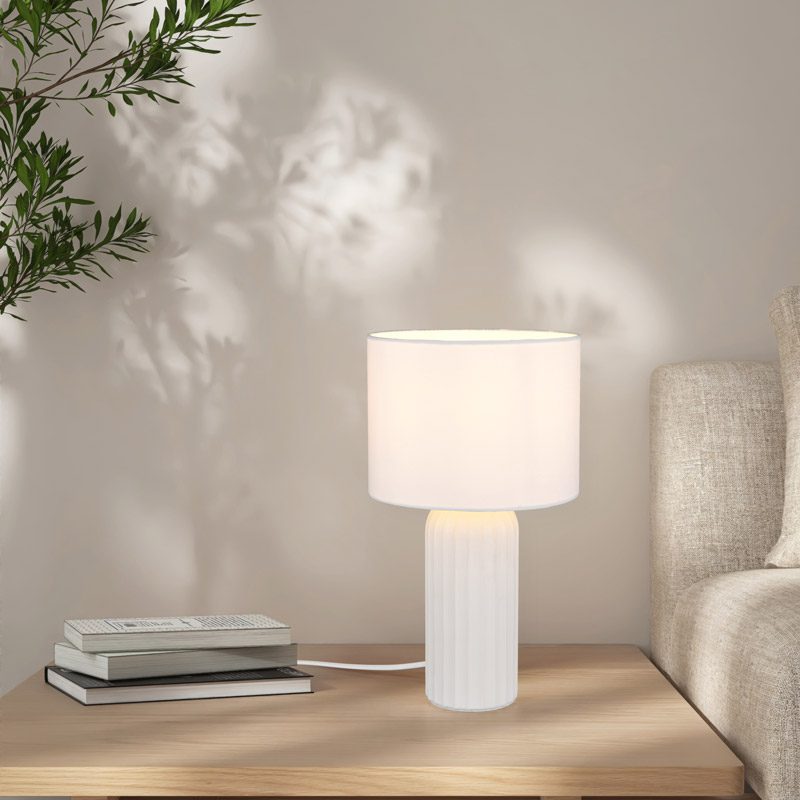Blair pöytävalaisimen selkeä muotoilu ja hillitty ulkonäkö tekevät siitä helposti erilaisiin sisustuksiin sulautuvan valaisimen. Johdollinen kytkin tekee käytöstä vaivatonta. Kompaktin kokonsa ansiosta valaisin sopii moniin tiloihin. Runko on valmistettu korkealaatuisesta keramiikasta ja vaalea beige kangasvarjostin tuo kokonaisuuteen lämpöä ja luonnollisuutta.