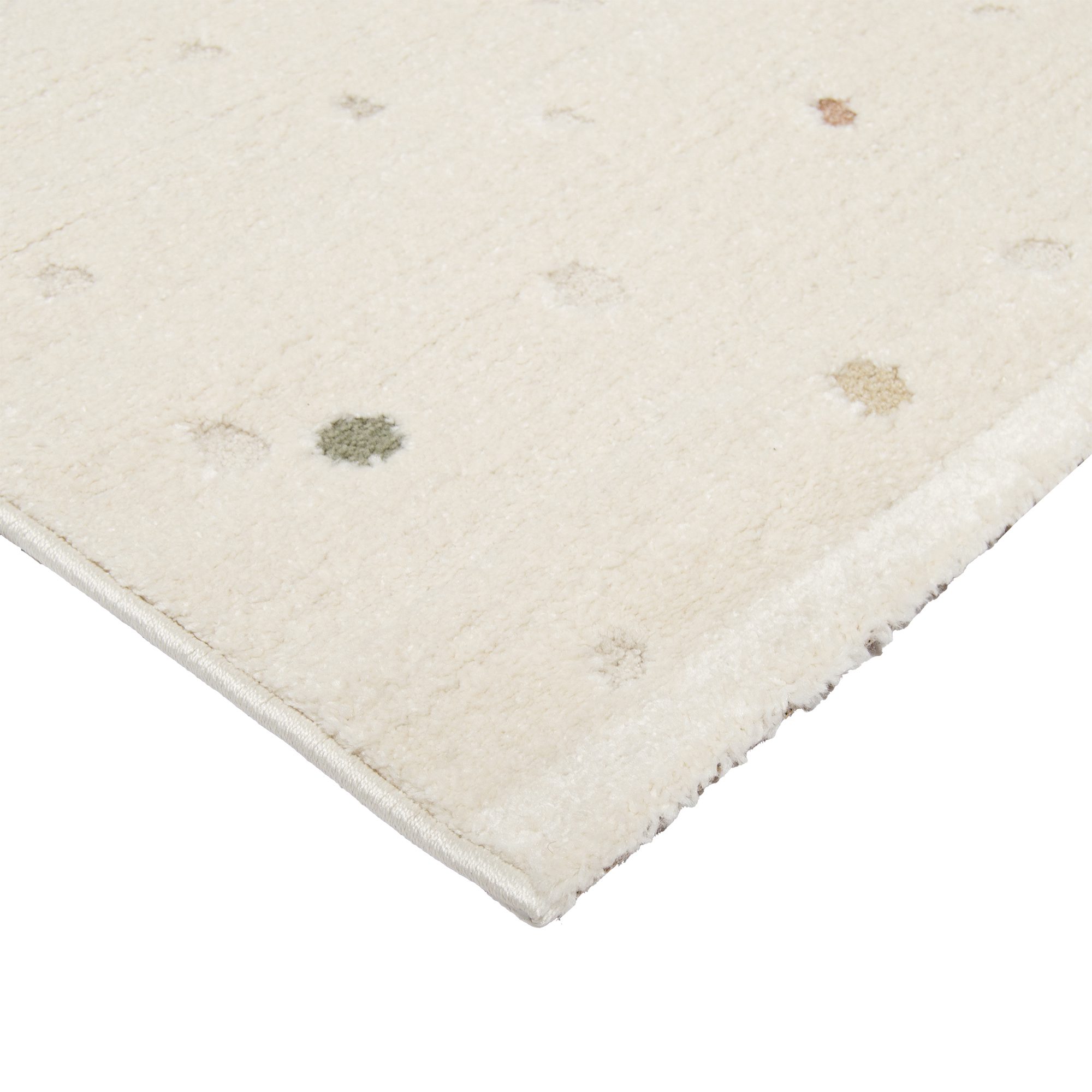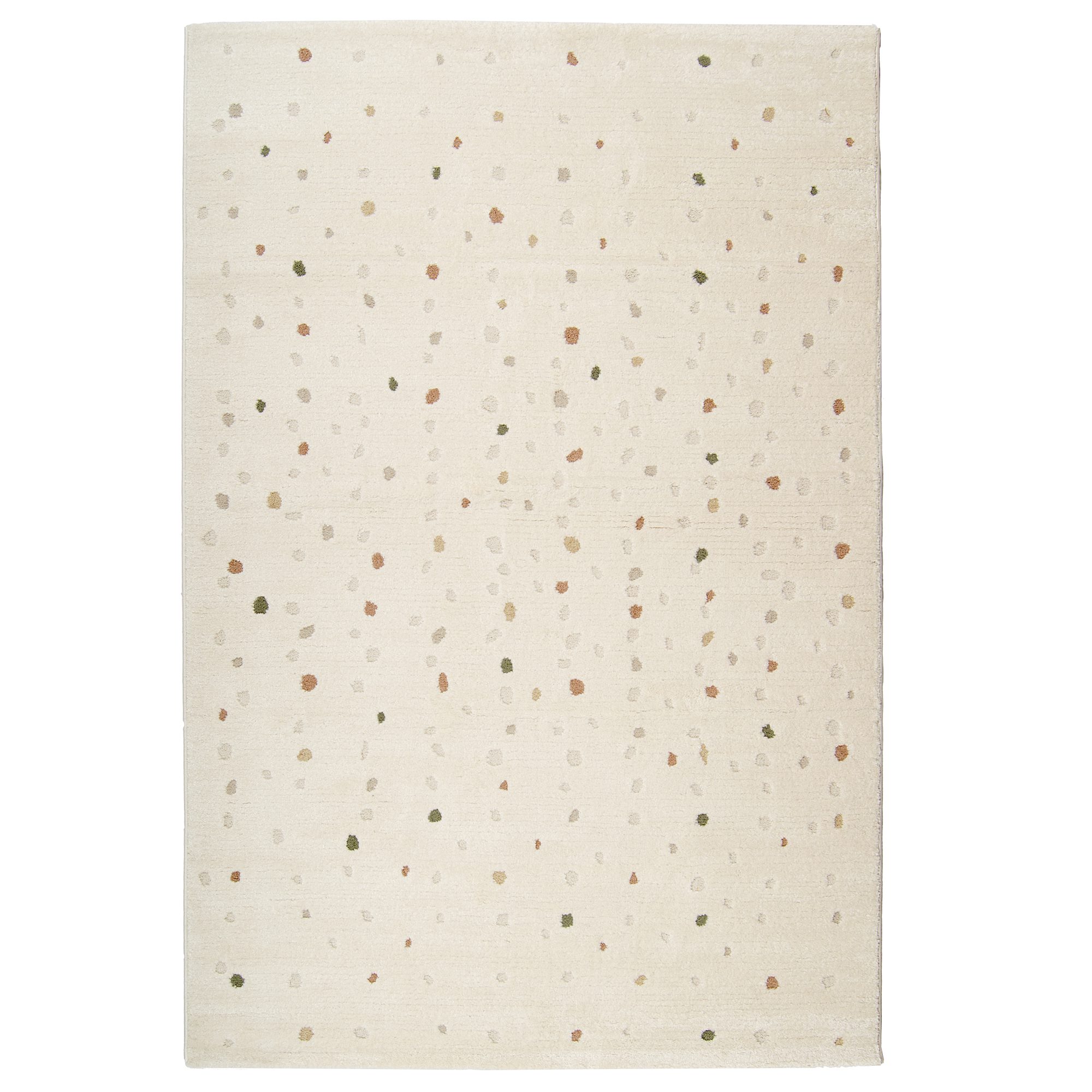 Matossa on hillitty, mutta leikkisä pallokuosi, joten se sopii niin olohuoneeseen kuin lastenhuoneeseenkin. Pilkullinen nukkamatto on ajaton valinta niin perinteisen kuin moderninkin sisustuksen pohjaksi. Pilkullisella matolla saa helposti sisustukseen ilmettä ja rytmiä. Matossa on kaunis luonnonvalkoinen taustaväri, josta pehmeänsävyiset pallot erottuvat kauniisti. Palloissa on beigen, korallin ja vihreän sävyjä. Hillityn värinen Dotta nukkamatto on helppo yhdistää kodin muihin tekstiileihin ja sävyihin. Matto sulautuu kauniisti neutraaliin sisustukseen ja rauhoittaa tyylikkäästi värikästä ja kuviollista sisustusta. Pilkullisella matolla saat esimerkiksi lastenhuoneeseen kutsuvan ja pehmeän ilmeen.