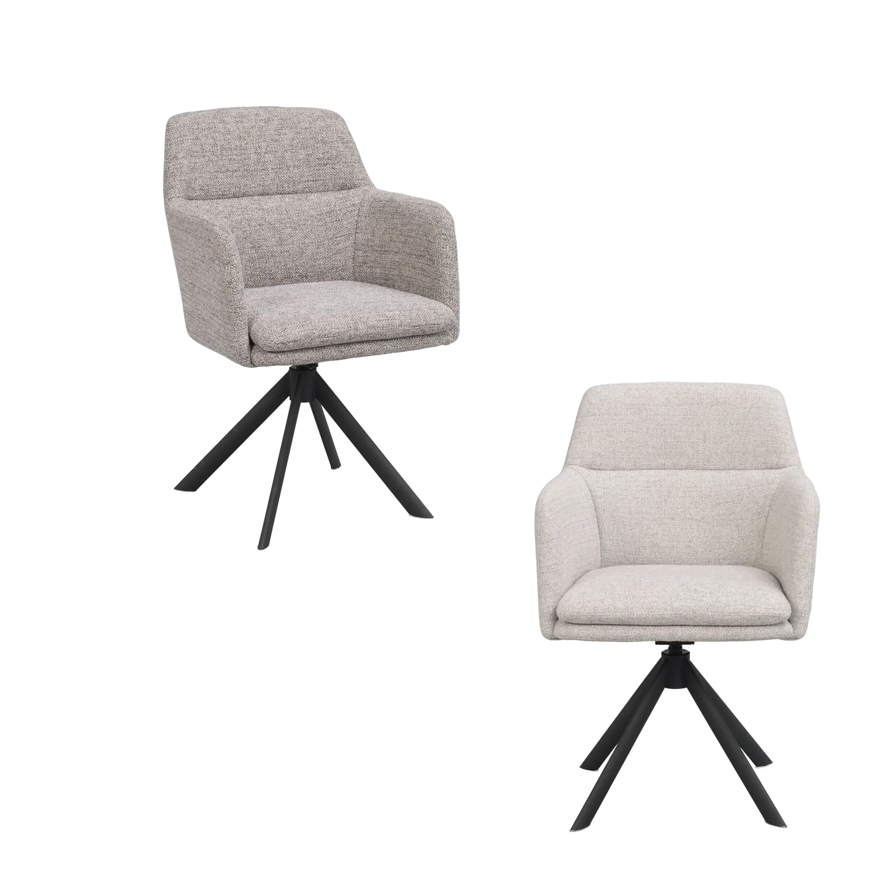 Gladstone tuoli yhdistää poikkeuksellisen mukavuuden ja monikäyttöisyyden tyylikkääseen ja moderniin muotoiluun. Verhoiltu nojatuoli tarjoaa nautinnollista istuinmukavuutta, ja sen musta metallijalka lisää modernia kontrastia. Tuolissa on 360 asteen kääntötoiminto yhdistettynä keinuvaan liikkeeseen tekevät siitä täydellisen istuimen niin ruokapöydän ääreen kuin työpöydälle. Lisäksi tuolin käytännöllinen palautustoiminto varmistaa, että se palaa aina suoraan asentoon käytön jälkeen, säilyttäen siistin ilmeen tilassa. Tämä tuoli on suunniteltu vastaamaan monenlaisiin tarpeisiin ja mukavuuden odotuksiin.