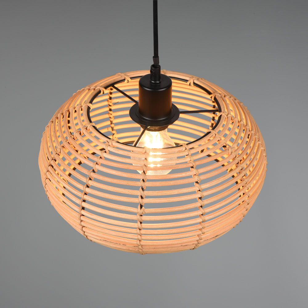 Boheemia ja tunnelmaa Inga kattovalaisimella. Valaisimessa vaalea rottinkinen varjostin ja musta johto/kupu.