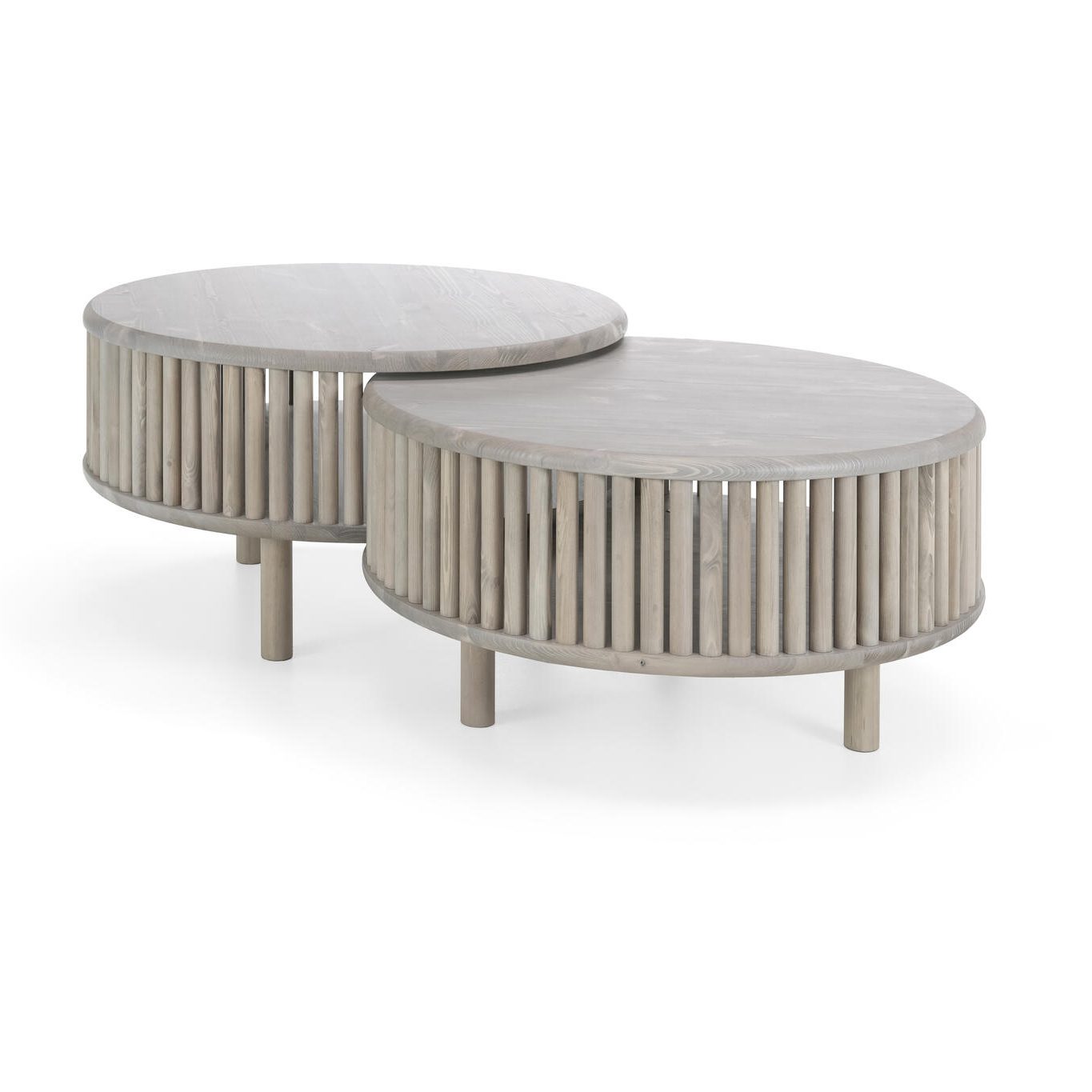 Sohvapöytien sisällä on reilusti säilytystilaa. Osa tasoista on avoinna.