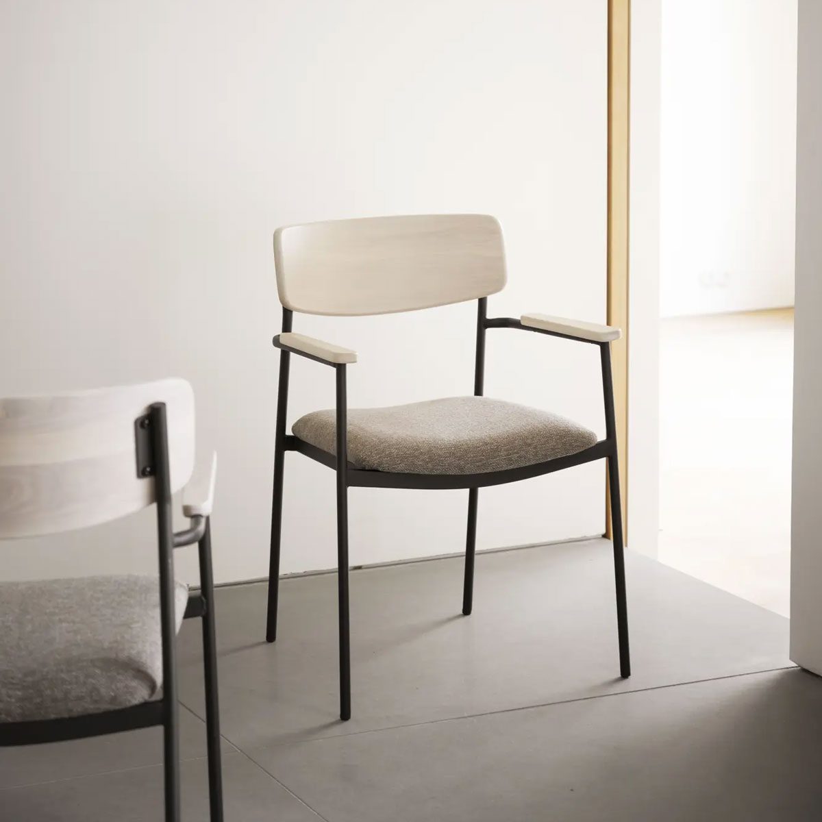 Tuolin runko on jauhemaalattua metallia. Selkänoja ja käsinojat ovat massiivitammea. Värivaihtoehtoja löytyy kolmea erilaista: tammi/tumma beige, valkopesty tammi/tumma beige ja ruskea tammi/vaalea beige.