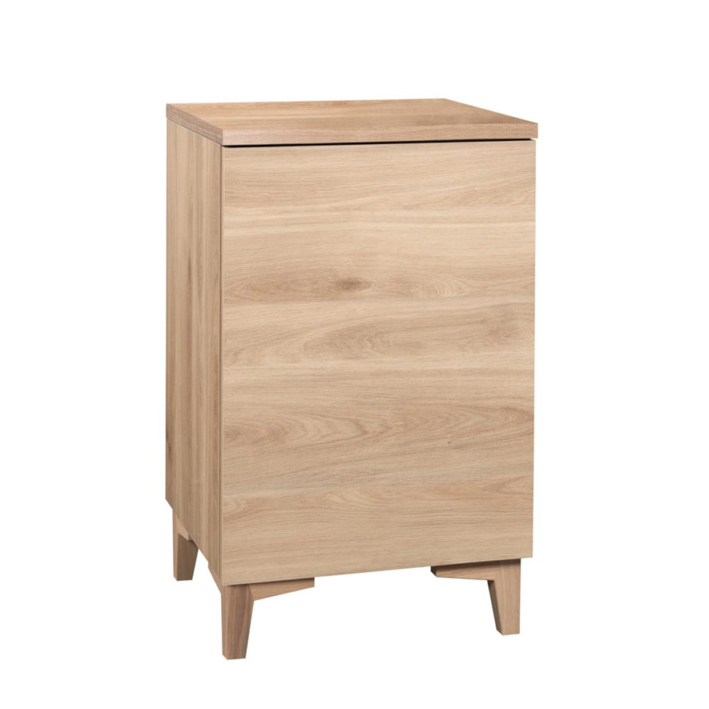 Hiipakan kotimainen Niklas tuoteperhe tuo lämpöä ja tyyliä kotisi sisustukseen. Kaapissa mahtuu säilyttämään tavaraa siististi. Laatikoissa ja ovissa on käytänöllinen Push-open mekanismi, minkä ansiosta vetimiä ei ole. Korkea tammen värinen puujalka tekee kokonaisuudesta siron näköisen.