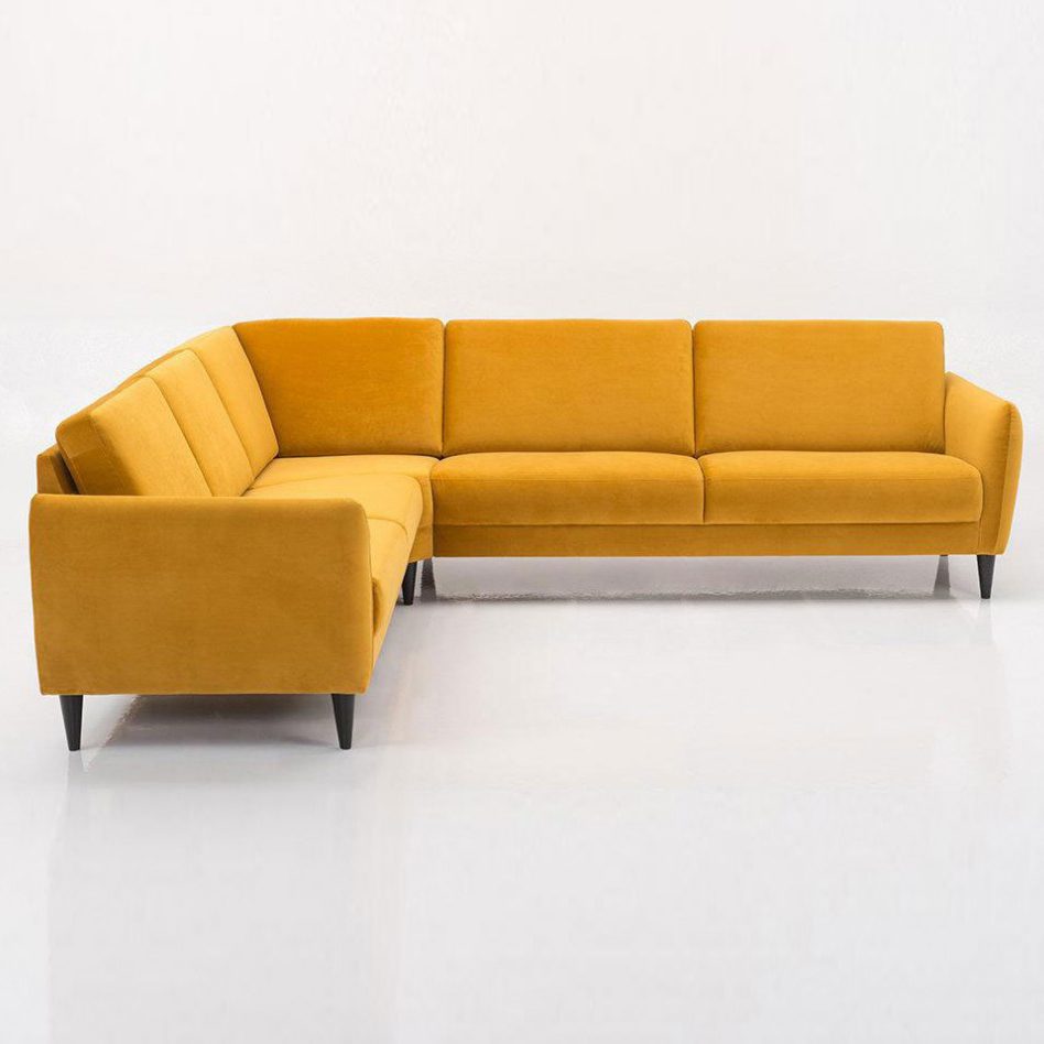 Skandia kulmasohvan kokoonpano on seuraava: käsinoja + 180 cm istuinpala kahdella istuintyynyllä + kulmapala viisteellä + 140 cm istuinpala + käsinoja. Kulmapalan koko on 92 x 92 cm. Kokonaisleveys muodostuu käsinojien ja istuinosien leveydestä. Tuotekuvassa on käsinojamalli 2600, jolloin kuvan mukaisen sohvan kokonaismitat ovat: leveys 292 cm (20 cm + 180 cm + 92 cm), ja syvyys 252 cm (92 cm + 140 cm + 20 cm). Kulmasohvan puolisuuden voit valita itse, eli kummalle puolelle tulee lyhyempi sivu.