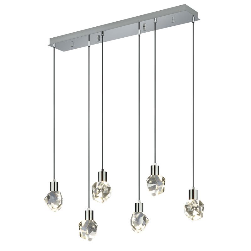 Verano riippuvalaisin yhdistää kristallin loiston ja modernin metallin tyylikkääksi kokonaisuudeksi. Tämä kuusivaloinen valaisin luo ympärilleen upean valon ja varjon vuorovaikutuksen, joka tekee tilasta kuin tilasta tunnelmallisen. Se on täydellinen katseenvangitsija mm. ruokapöydän yläpuolelle.