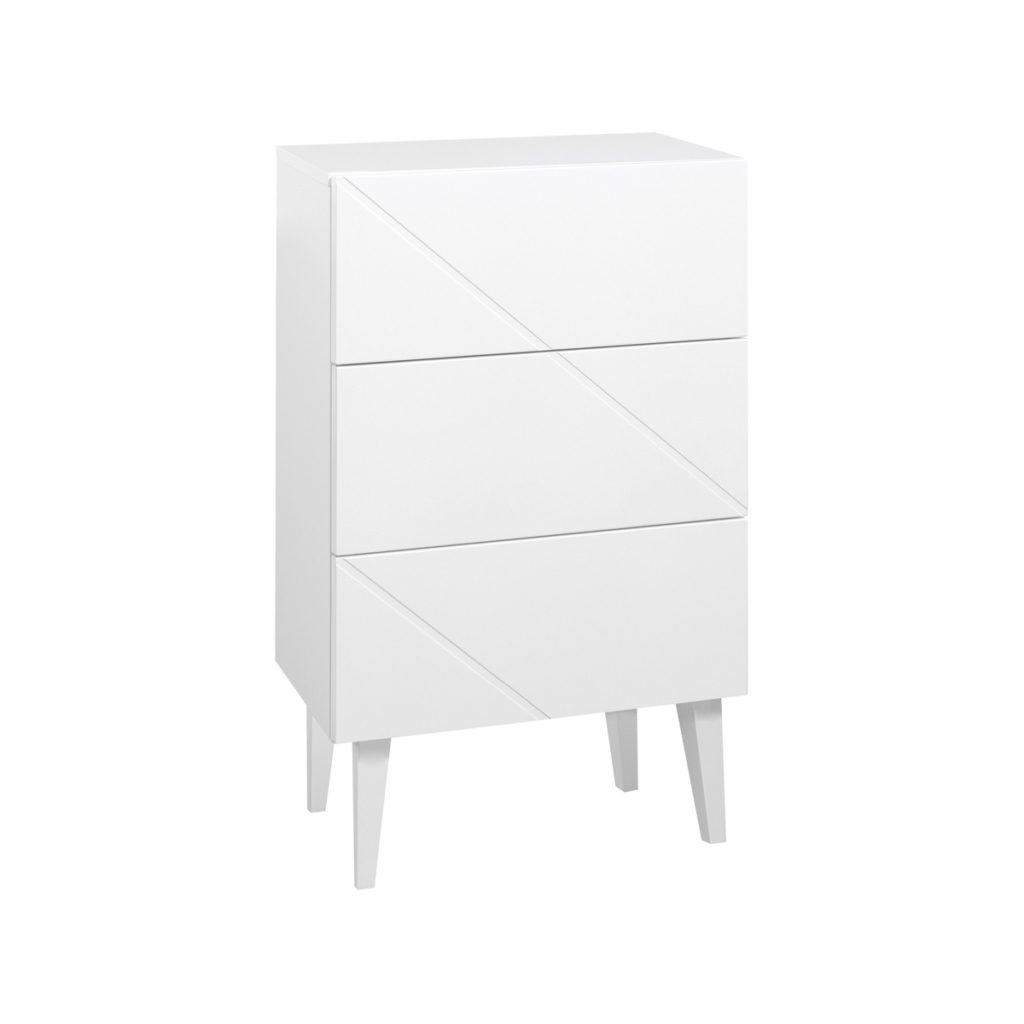 Tuotteen runko on maalattua MFC-levyä, kansi ja etusarjat maalattua MDF-levyä. Jalat ovat maalattua massiivipuuta.